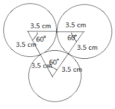 Three circles each of radius 3.5 cm touch one another