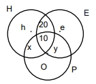 Let the number of students studying only H be h, only E be e, only H and P but not E be x, only E and P but not H be y.