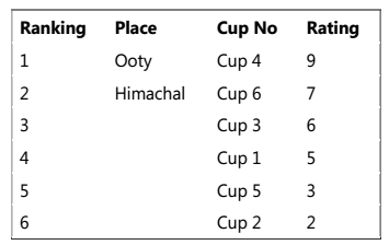 - Tea from Ooty got the highest rating, but it was not in Cup 3.