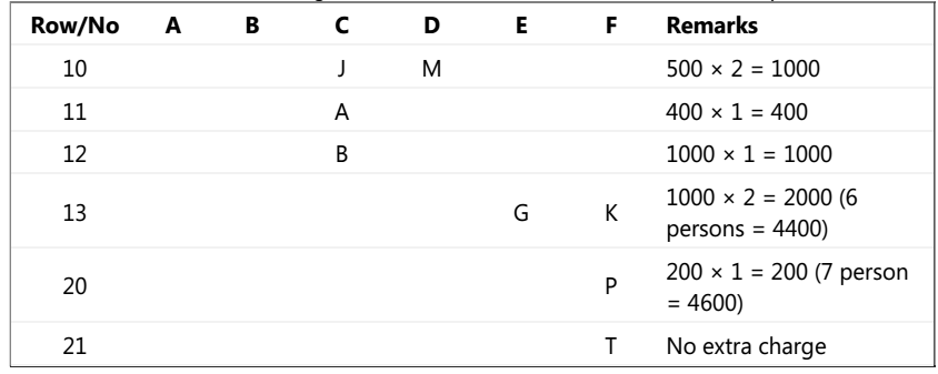 - Seven of them had to pay extra amounts, totaling to Rs. 4600, for their choices of seat. One of them did not pay any additional amount for his/her choice of seat.