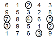 Thus in the table given above, consider the individual seated at height 8 on 3rd row and 2nd column. He can be reached by four individuals. He can be reached by the individual on his left at height 7, by the two individuals on his right at heights of 4 and 6 and by the individual above at height 5.