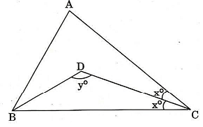 In the figure given below, ∠A = 80° and ∠ABC = 60°. BD and CD bisect angles B and C respectively. What are the values of x and y respectively?