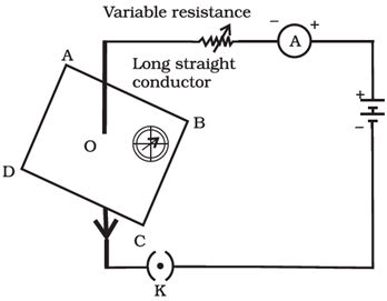 If the key in the arrangement is taken out (the circuit is made open) and magnetic field lines are drawn over the horizontal plane ABCD, the lines are