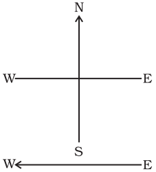 A constant current flows in a horizontal wire in the plane of the paper from east to west as shown in Figure. The direction of magnetic field at a point will be North to South